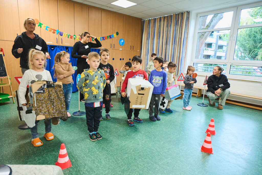 Verkehrswacht, Sparkasse, Westenergie und Unfallkasse NRW unterstützen Kitas, Eltern und Kinder beim Üben des sicheren Schulwegs